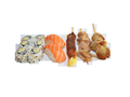 2 Sushis saumon, 6 California tuna avocat, 1 Yakitori boeuf fromage, 1 Yakitori poulet, 1 Yakitori boulettes poulet.