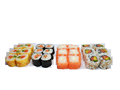6 Egg roll saumon avocat, 6 Maki saumon ciboulette, 6 Pink roll cheese, 6 California saumon avocat, Salade de chou + Riz ou soupe miso